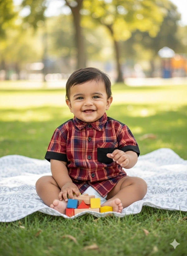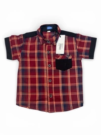 This stylish button-down combines the timeless look of plaid with contemporary black accents. It is a versatile piece that can be dressed up for family gatherings or worn casually as an overshirt, making it a functional and trendy addition to a young boy’s wardrobe.