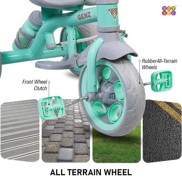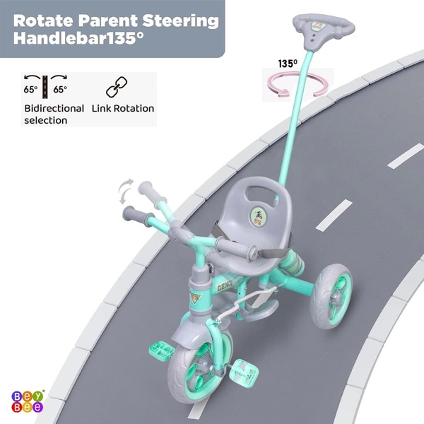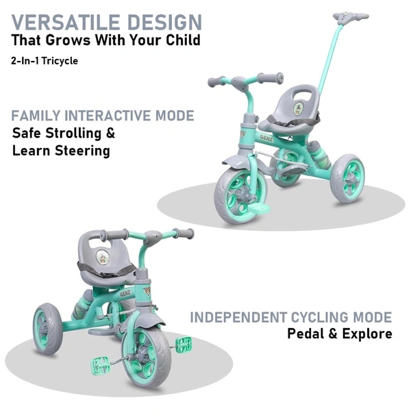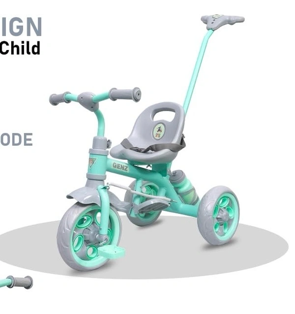 GenZ Secure Baby Tricycle with Seat Belt, Water Bottle, Parent-Push Handle| Kids Tricycle