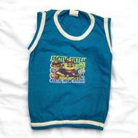 This is a charming and comfortable sleeveless T-shirt or vest designed specifically for young children. The primary color is a bright, vibrant teal blue (or turquoise blue). The garment is accented with a contrasting cream/off-white rib-knit trim around the neck opening, armholes, and the bottom hem, which provides a clean, finished look and enhances durability.
