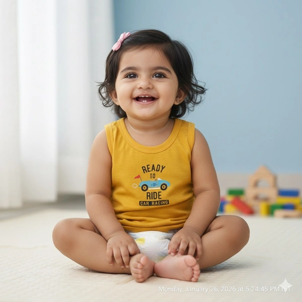 This is a straightforward and comfortable sleeveless vest or tank top designed for a toddler or young child. The design is simple and functional, focusing on comfort and ease of wear, making it suitable for both innerwear and casual outerwear during hot weather.