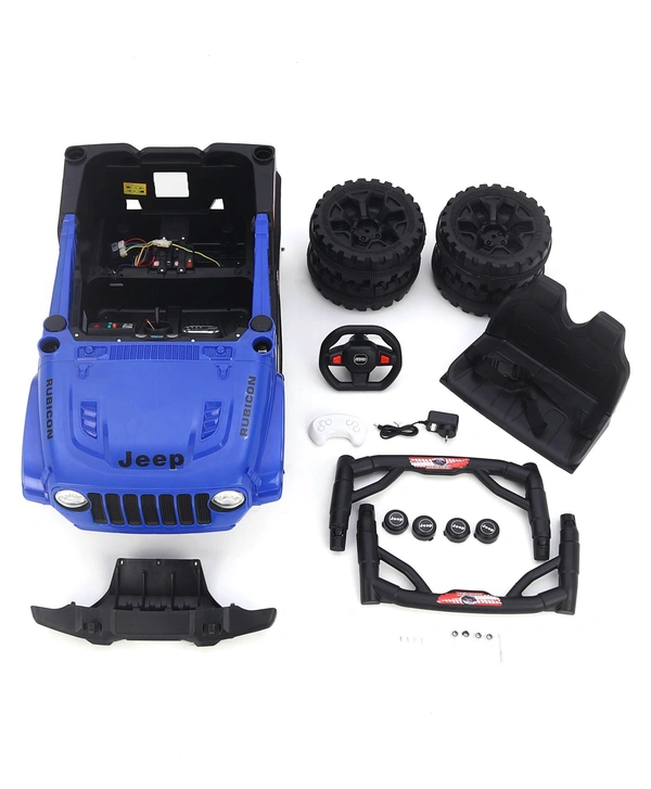 1 Charger, 1 Remote, 1 Battery, 1 Ride on Jeep