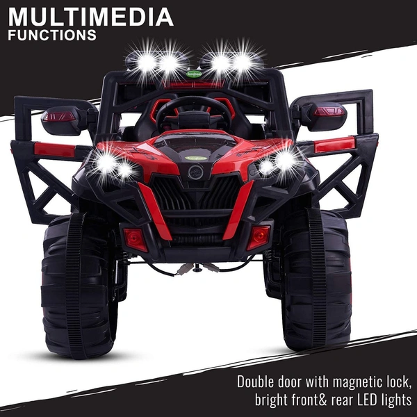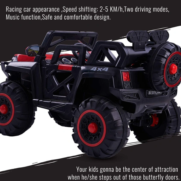 Big wheeler Battery Jeep has music system compatible with aux, pen drive and sd card. This jeep has working Led lights in front and back.