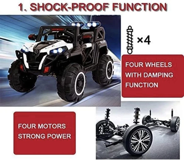 Big wheeler Battery Jeep has music system compatible with aux, pen drive and sd card. This jeep has working Led lights in front and back.