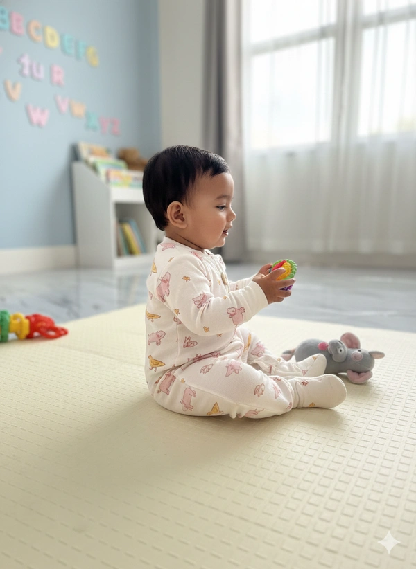 Ideal for daily wear, this romper keeps babies cozy in all seasons. The easy-to-wear design makes dressing and diaper changes simple and quick for parents. With strong stitching and durable fabric, it maintains its shape and softness even after repeated washes, offering excellent value for money.