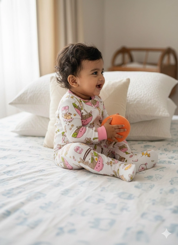 Ideal for daily wear, this romper keeps babies cozy in all seasons. The easy-to-wear design makes dressing and diaper changes simple and quick for parents. With strong stitching and durable fabric, it maintains its shape and softness even after repeated washes, offering excellent value for money.