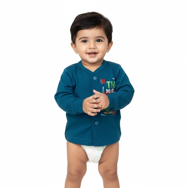 • Garment Type: A cozy, long-sleeved button-front top (like a lightweight cardigan or jacket) designed for an infant or young child.